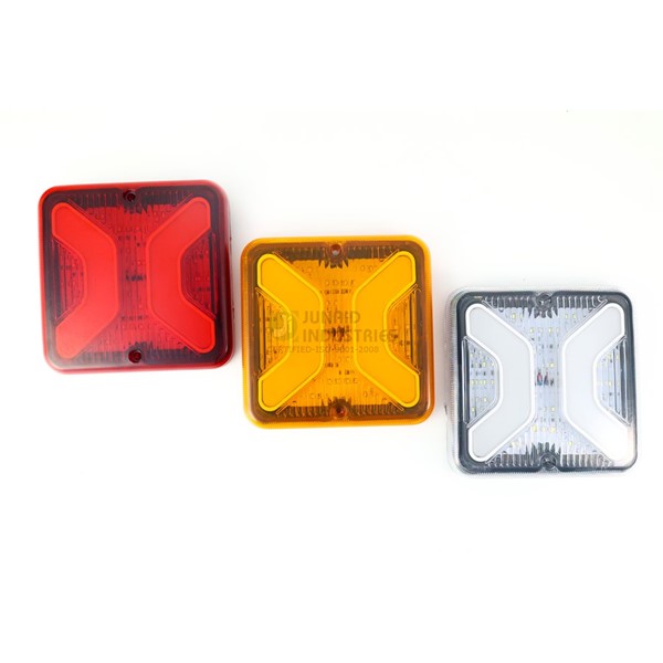 These square LED bus tail lights are designed for rear signaling on buses and other commercial vehicles. They feature a durable housing and bright LED illumination to enhance visibility on the road. The lights are available in red, amber, and White lens options to suit brake, turn, and reverse functions.